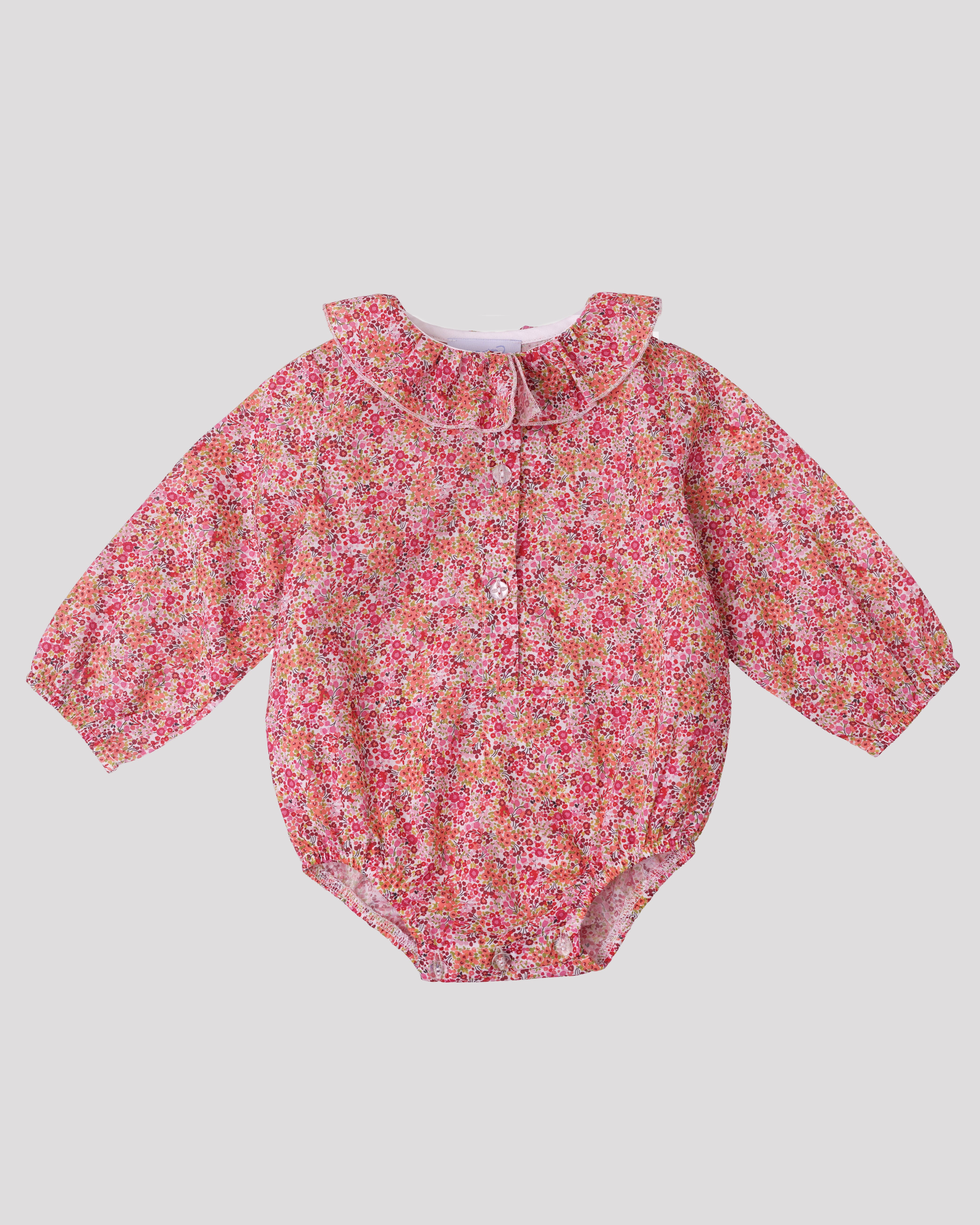 Body cu flori roz cu guler cret si maneca lunga cu terminatie elastica certificat OEKO-TEX®
