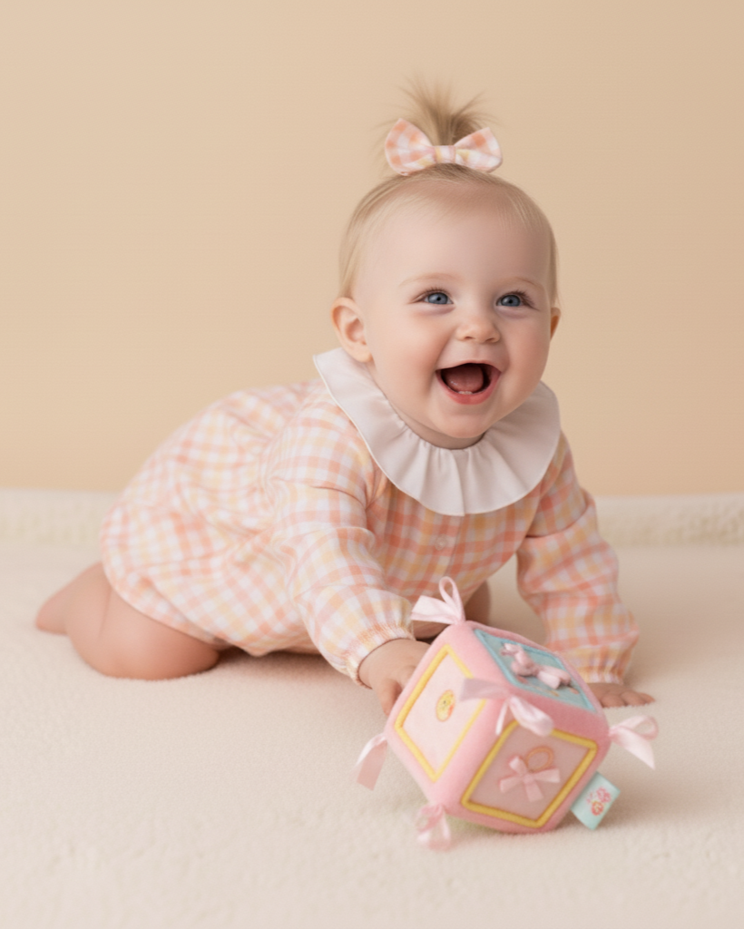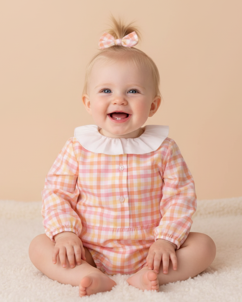 Titlu produs: Rochie pentru bebeluși cu mâneci lungi și guler decorativ Descriere produs: Rochie lejeră pentru bebeluși, cu mâneci lungi și un guler mare, decorativ. Este prevăzută cu două buzunare în față și se închide cu nasturi la spate. Lungimea...