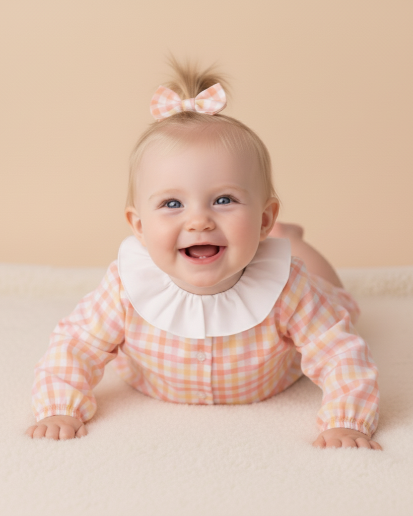 Body cu carouri galbene cu guler cret si maneca lunga cu terminatie elastica certificat OEKO-TEX®