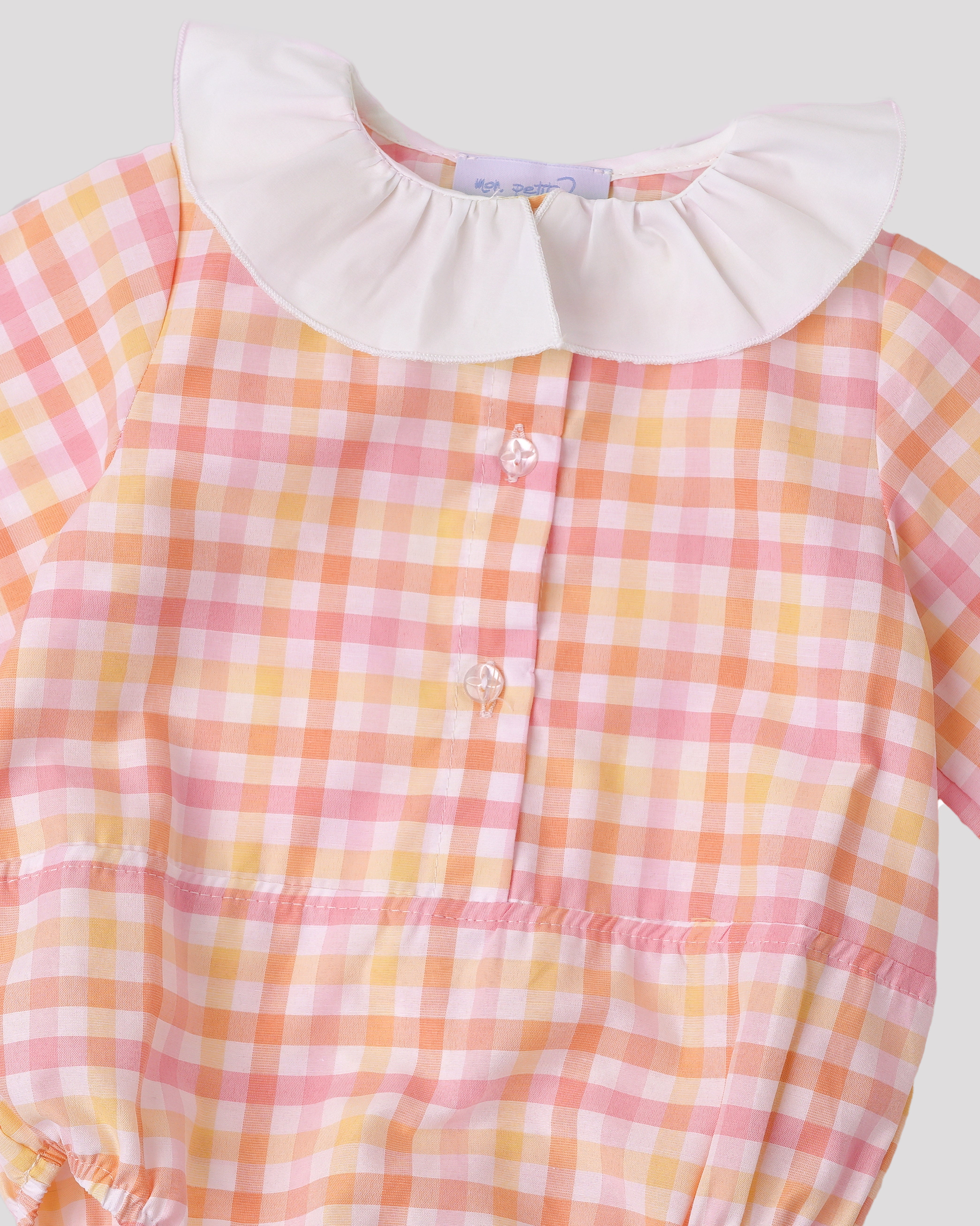 Are guler cret alb din bumbac carouri galbene si nasturi frontali care adauga un aer clasic si usor sofisticat.