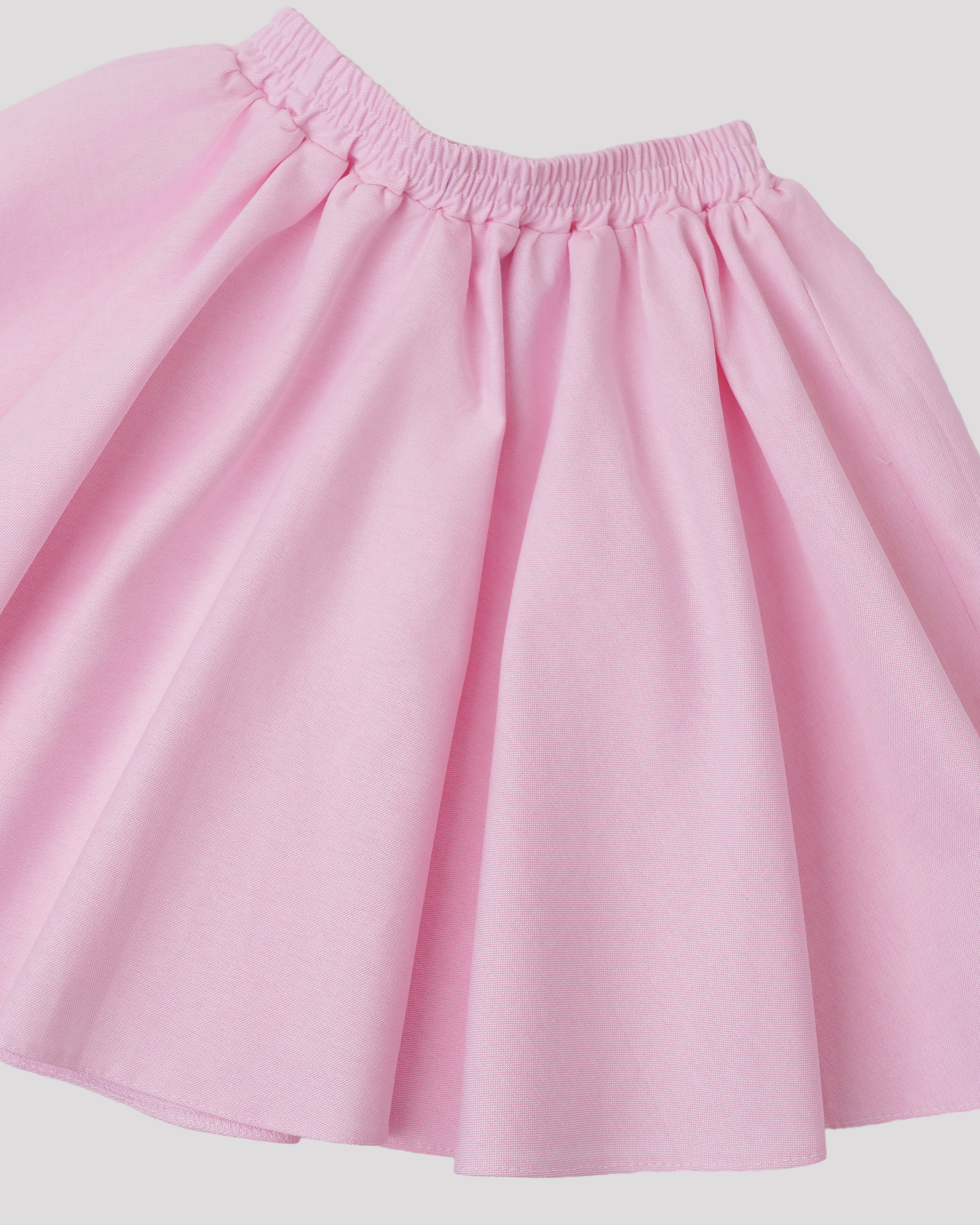 O fustă care se învârte fix cât trebuie și aduce zâmbete la fiecare pas! Confectionată din bumbac 100%, delicată ca o floricică de primăvară, are elastic în talie pentru confort maxim și creț exact cât să facă piruetele mai amuzante.