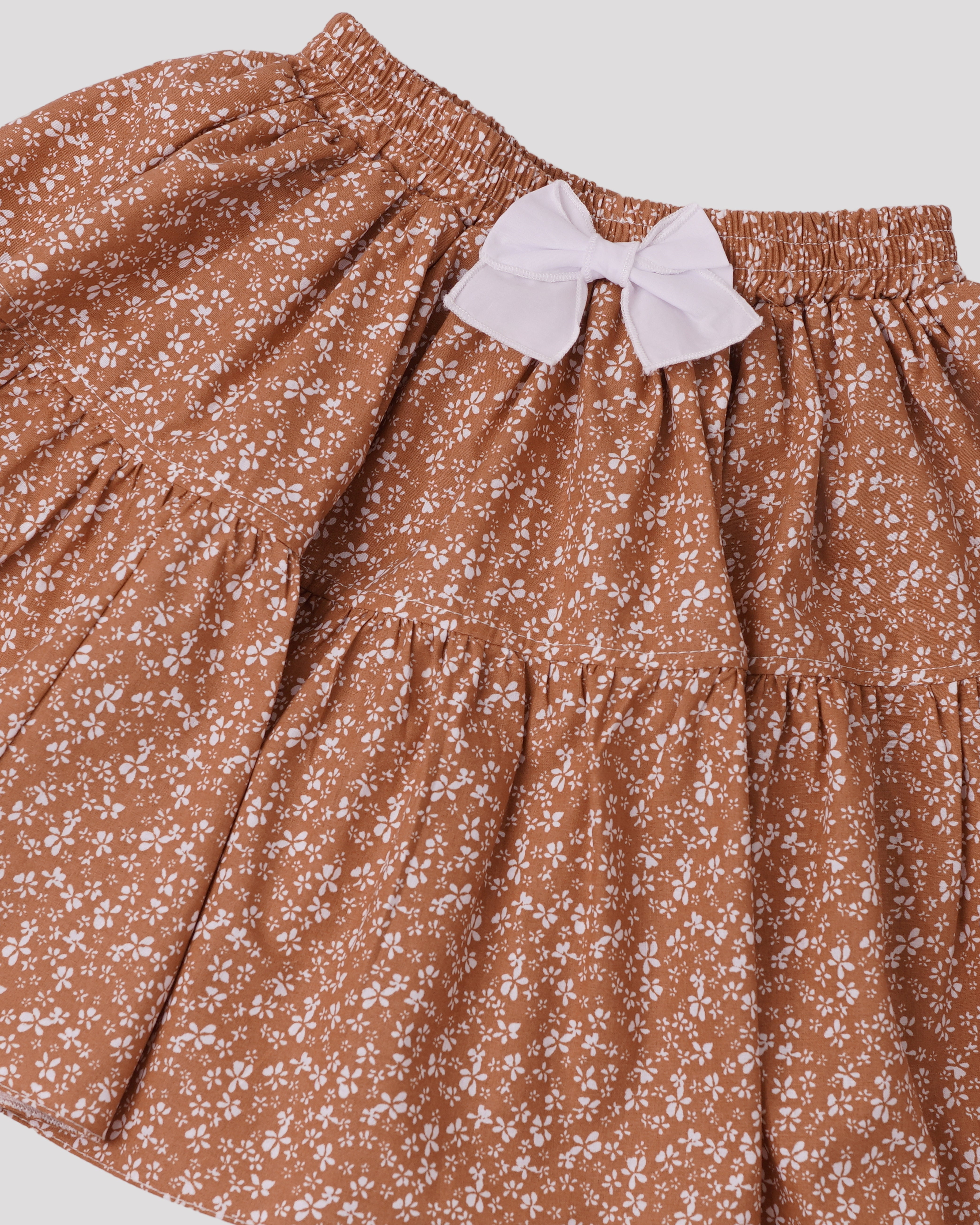 O fustă care se învârte fix cât trebuie și aduce zâmbete la fiecare pas! Confectionată din bumbac 100%, delicată ca o floricică de primăvară, are elastic în talie pentru confort maxim și creț exact cât să facă piruetele mai amuzante.