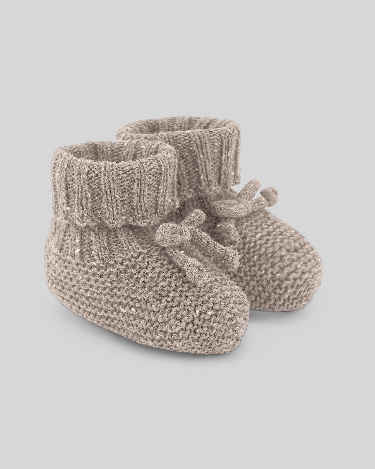 Botosei tricotati cu manseta inalta si elastica pentru o fixare sigura. Fundita decorativa adauga un aspect delicat si lucrat manual. Disponibili in diverse culori, usor de asortat cu orice tinuta pentru nou-nascuti.