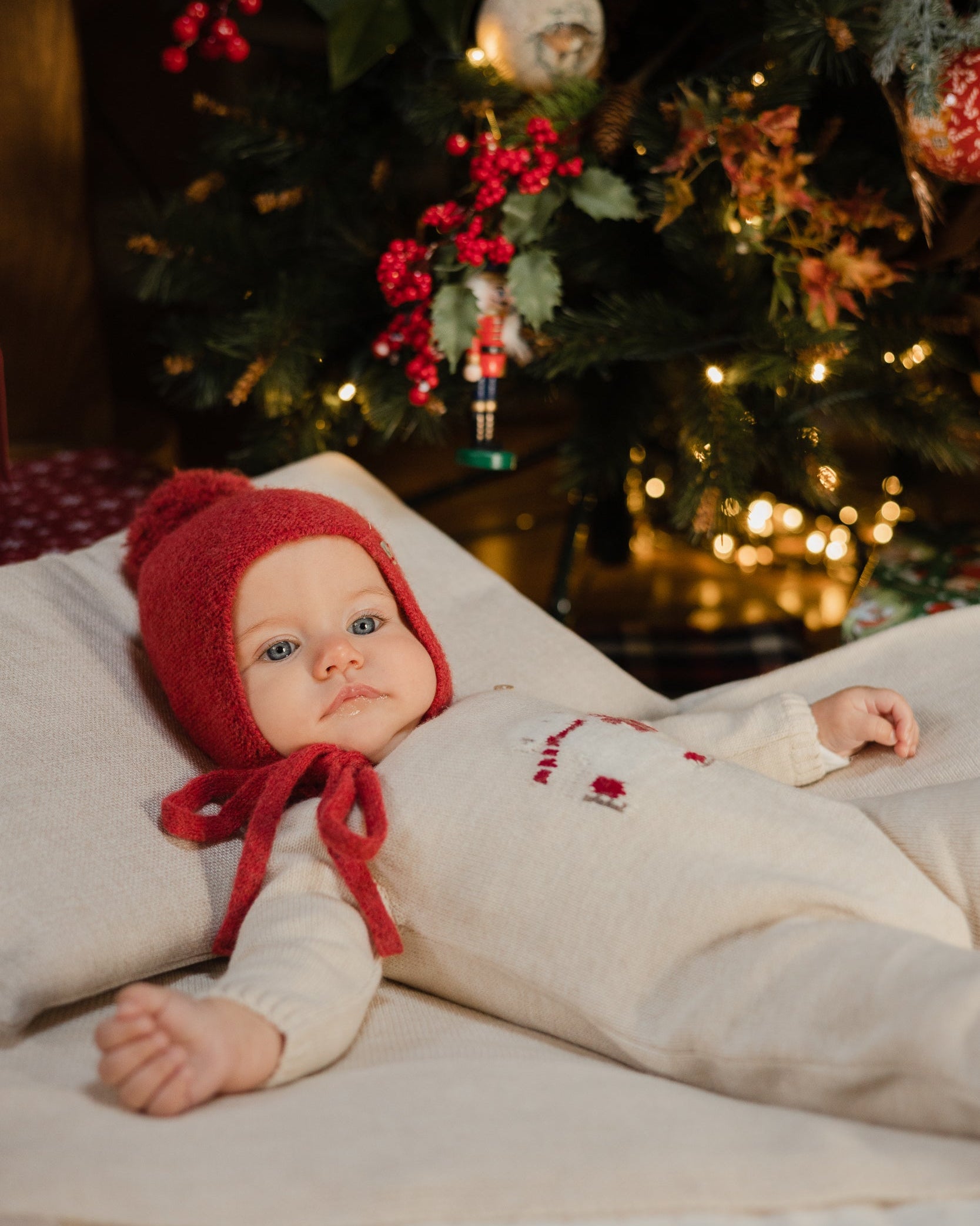 Salopea bebe 100% lana fina cu ursulet Jaquard