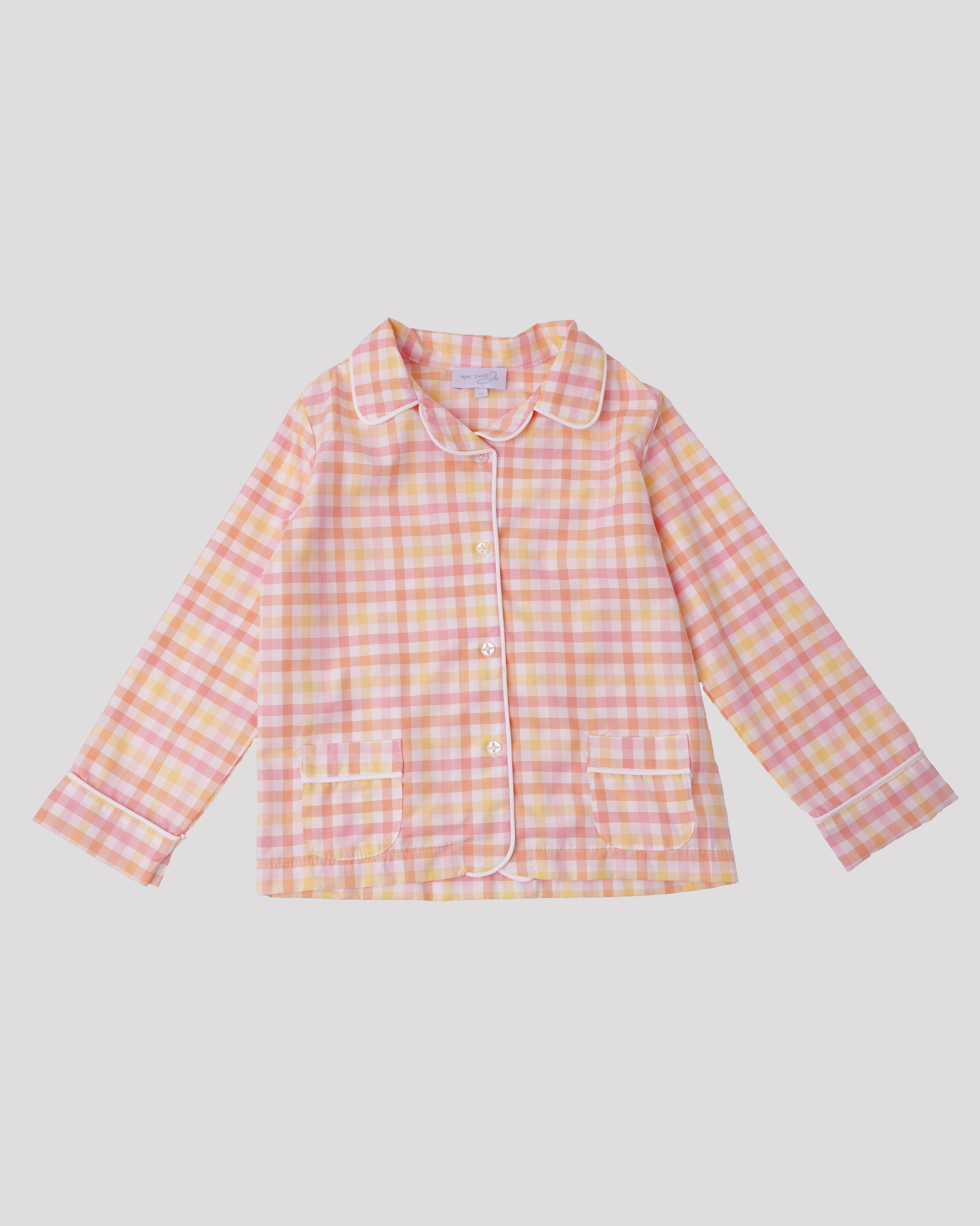 Pijama este de culoare galbena cu carouri, o culoare clasica si calmanta, potrivita pentru un somn linistit. Gulerul de camasa adauga un aspect elegant si rafinat, iar vipusca de la terminatii aduce un detaliu jucaus si atragator.