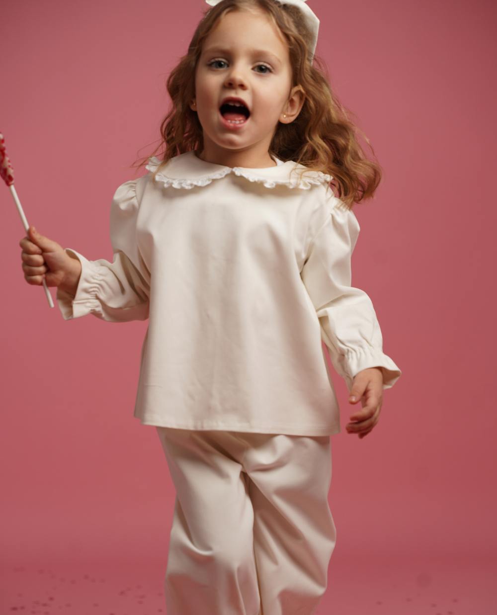 Titlu produs: Bluza fete cu maneca lunga, fundite brodate si volanase MarMar Copenhagen Descriere produs: Aceasta bluza delicata, cu croiala lejera si maneci lungi, este accesorizata cu fundite brodate si volanase fine, care adauga un plus de eleganta si rafinament....