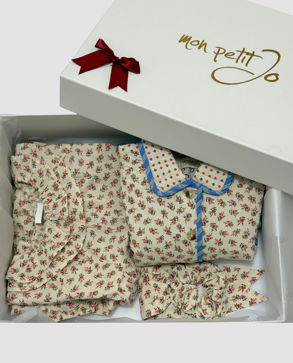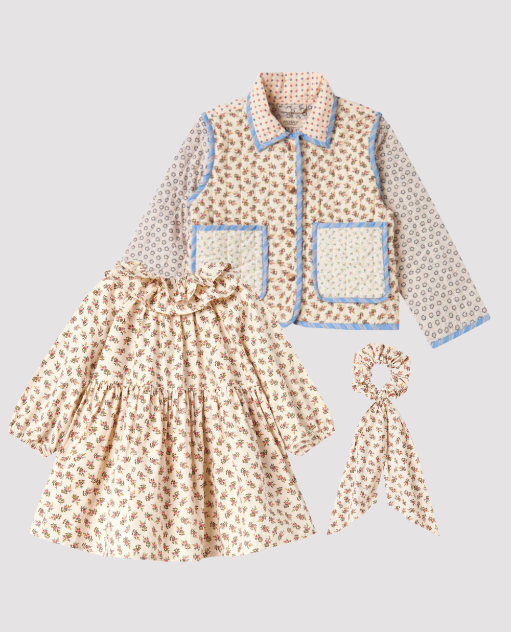 Elastic pentru păr realizat din bumbac organic, cu imprimeu floral asortat. Delicat, confortabil și perfect pentru coafuri de zi cu zi.