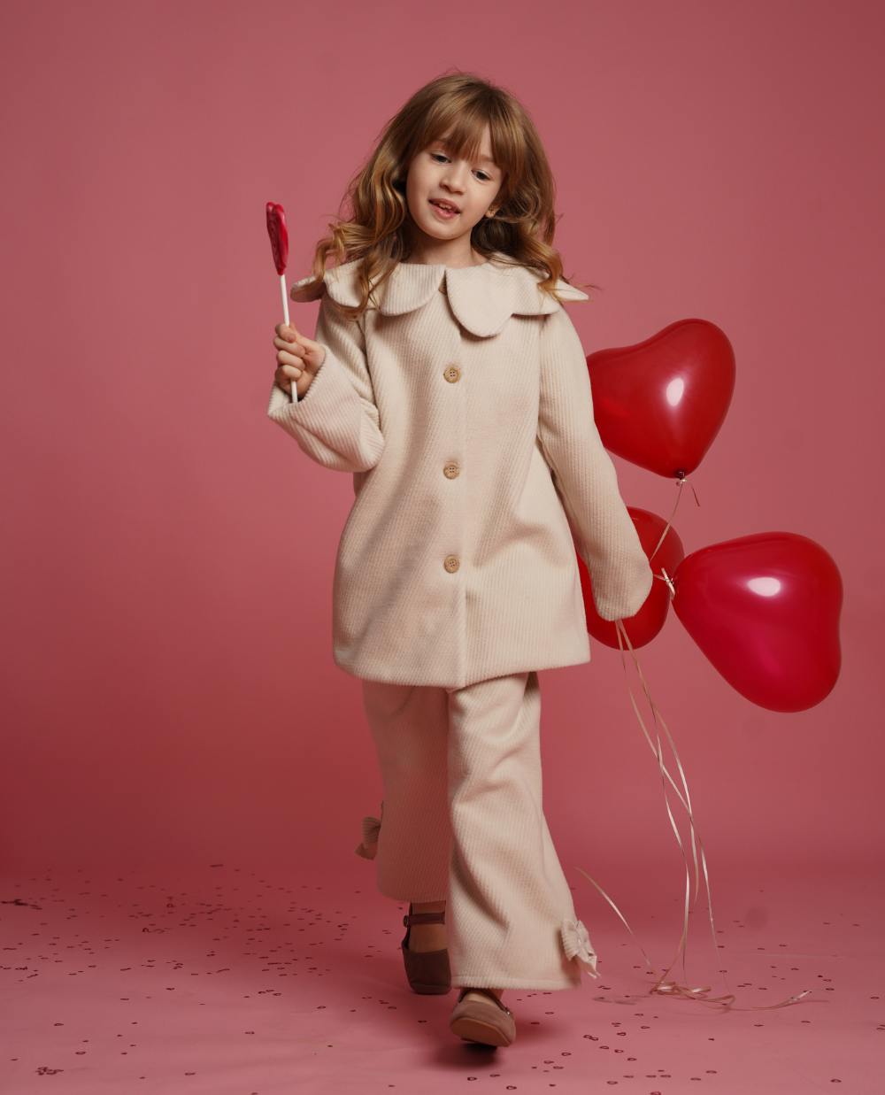 Pantaloni realizați din stofă moale, în nuanță de ivoire, cu croială evazată și detalii cu funde care adaugă o notă delicată și feminină. Designul lejer oferă libertate de mișcare și un aspect elegant, potrivit atât pentru ținute casual, cât și pentru ocazii speciale.