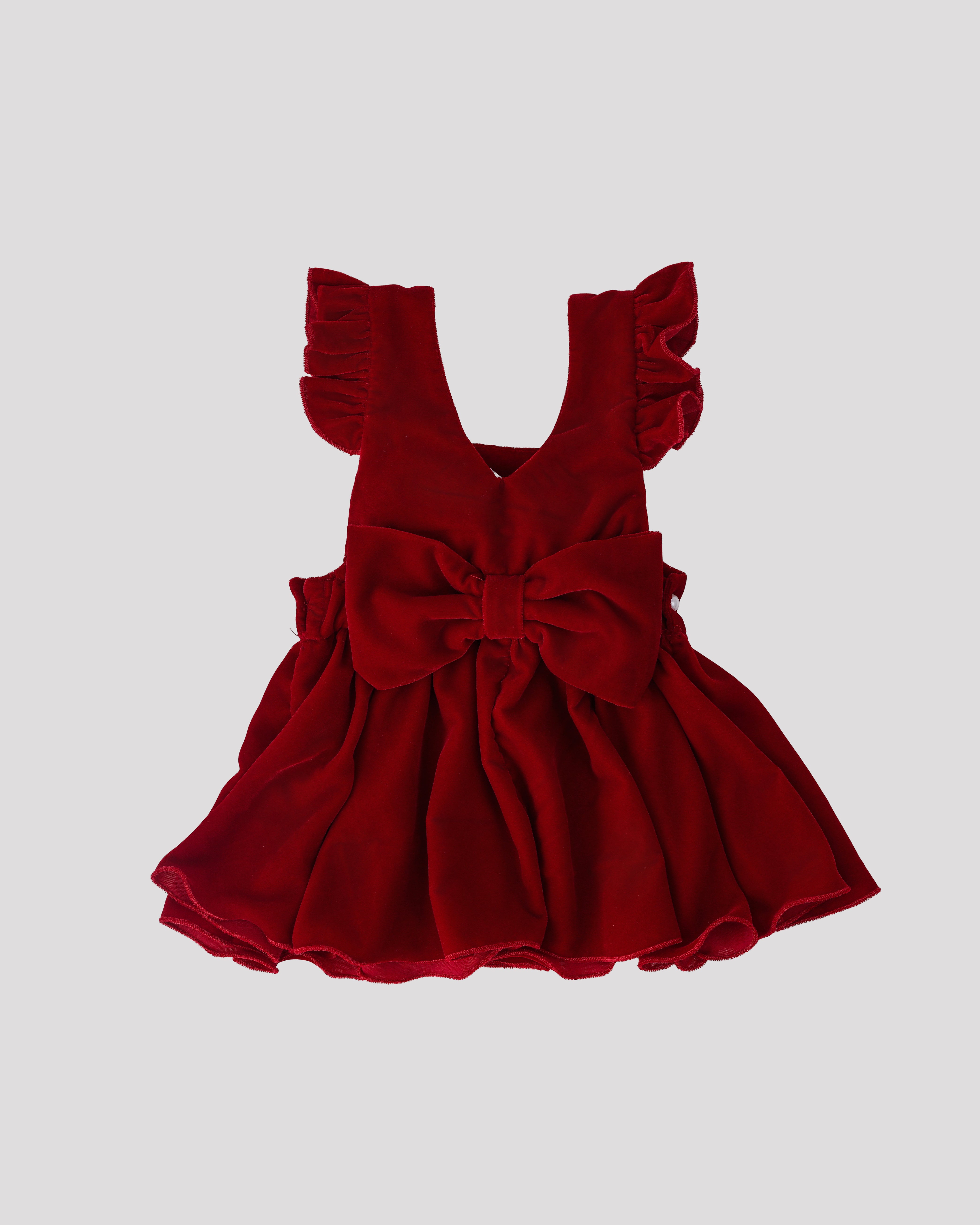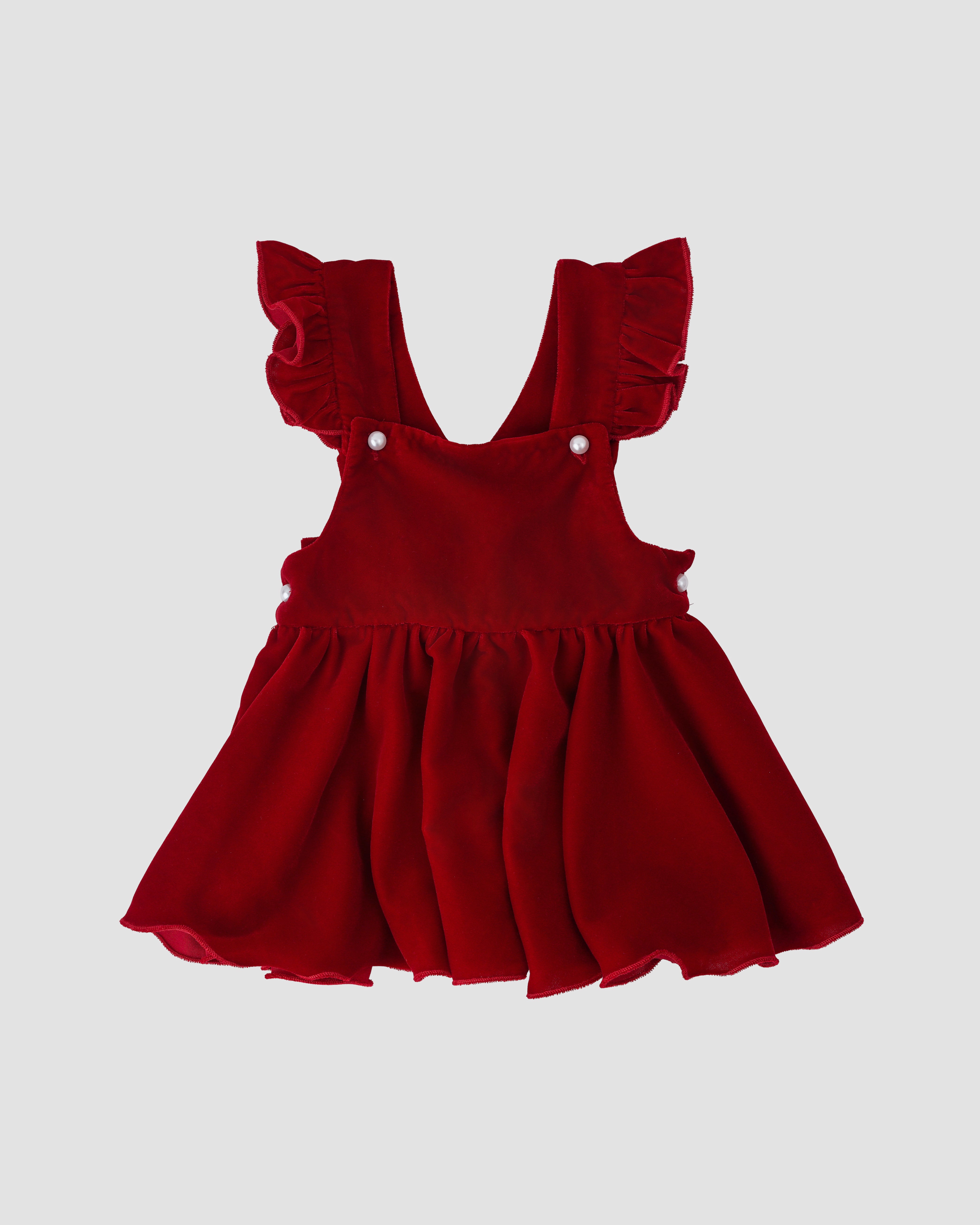 Acest sarafan adorabil este piesa ideală pentru ținutele de Crăciun sau alte ocazii speciale. Realizat dintr-o catifea moale și plăcuta la atingere, modelul se remarcă prin croiala sa lejeră și feminină.