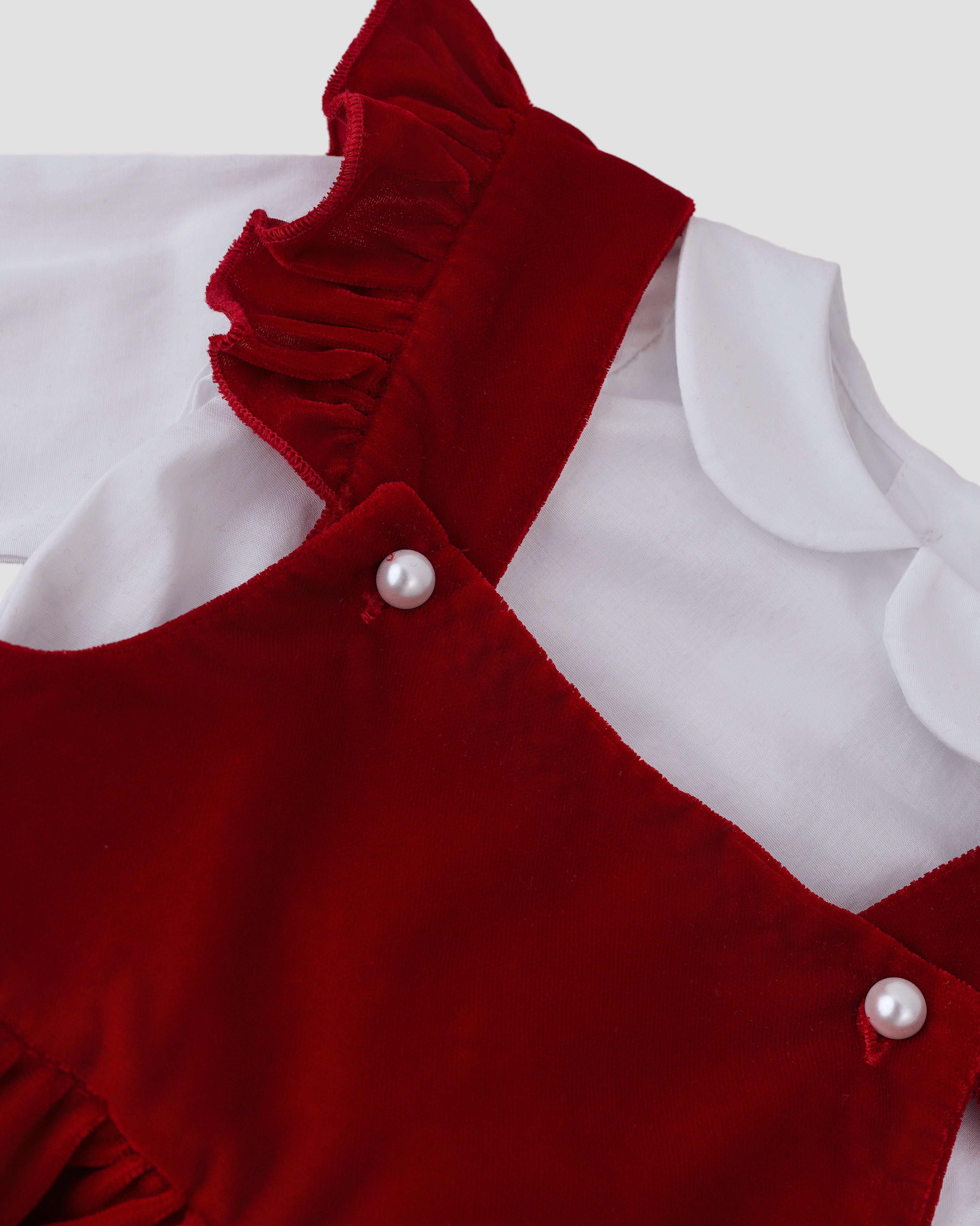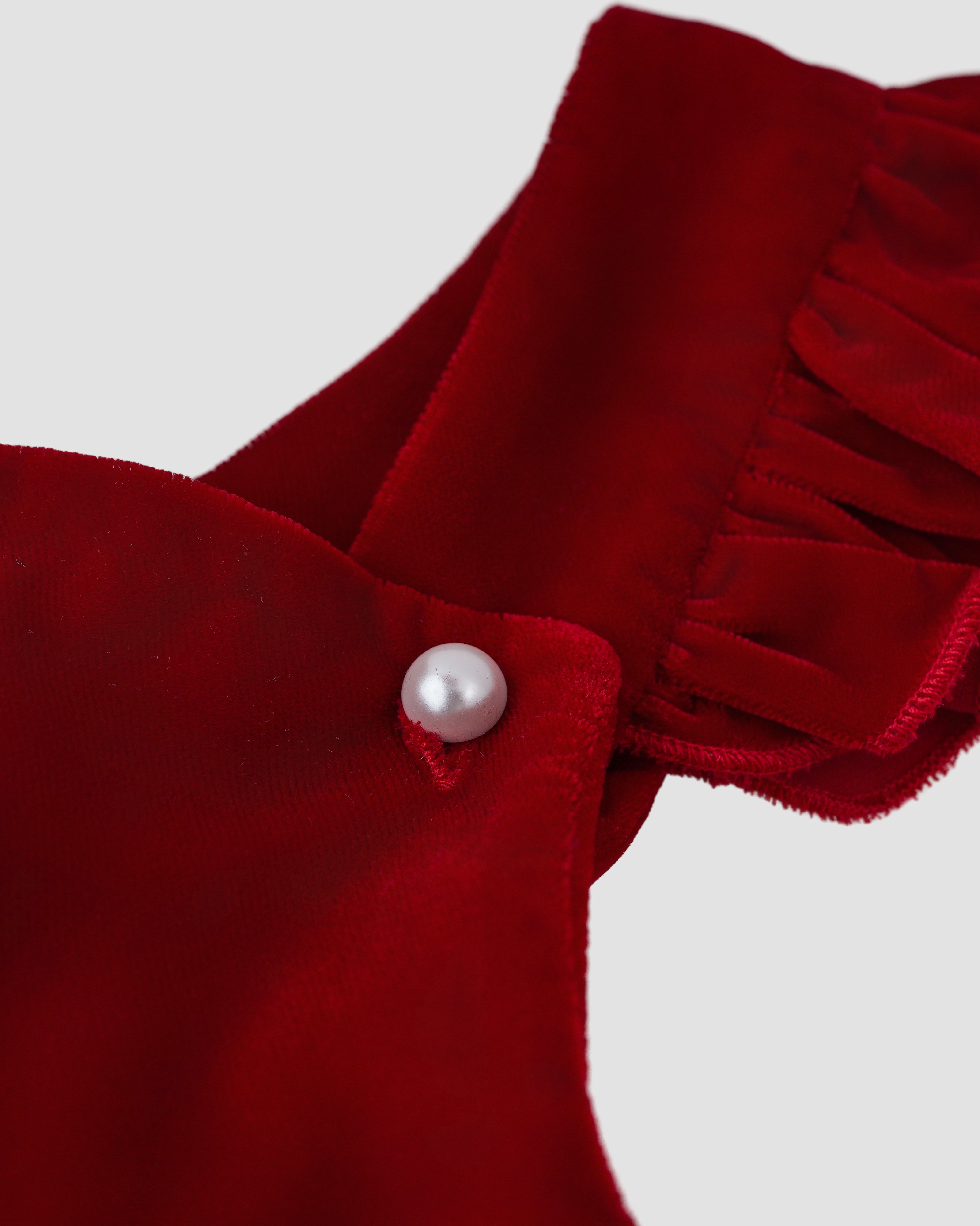 Sarafan din catifea pentru fetițe, model festiv, perfect pentru sărbători, petrecere de Craciun, serbari, sedinte foto
